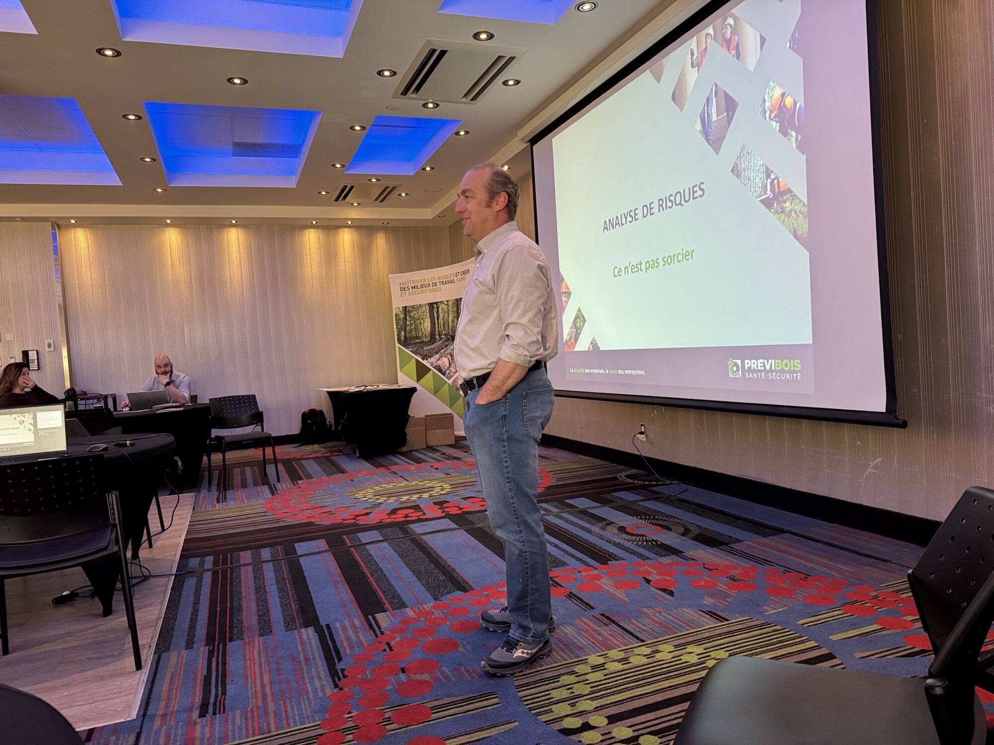 Une journée riche en échanges Notre conseiller sénior en prévention, M. Philippe Rouleau , a débuté la journée en offrant un atelier sur l’identification et l’analyse de risques, un sujet clé en SST. Très appréciée des participants, cette présentation a permis d’explorer les différentes facettes de la démarche et d’offrir des outils concrets applicables sur le terrain.